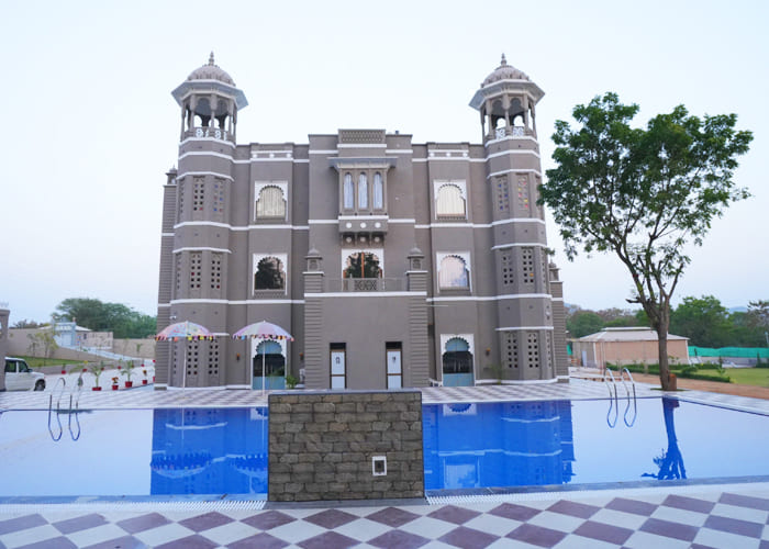 Take a dip in the pool surrounded by mango trees and lush greenery or sip a cocktail and watching the sunset over the Monsoon Palace.